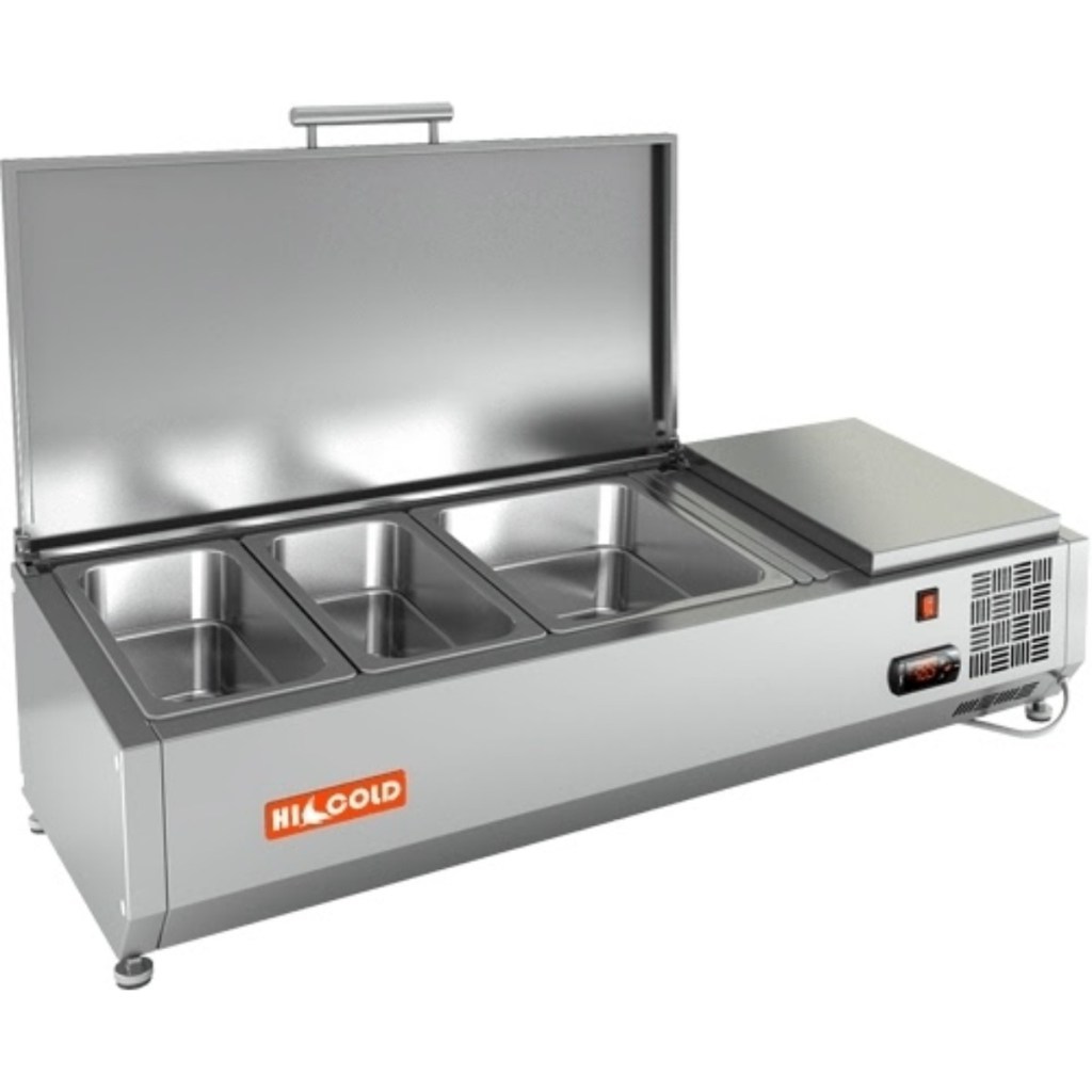Каталог оборудования Холодильное оборудованиеВитрины для ингредиентовВитрина холодильная для ингредиентов HICOLD VRTU 1000 к PZE3 (1/3) Витрина холодильная для ингредиентов HICOLD VRTU 1000 к PZE3 (1/3) Код товара: 064-664 Поделиться: WhatsAppTelegram СравнитьДобавить в КПВ избранное 0 47 673 ₽ В корзину 0 шт Под заказСамовывоз сегодня бесплатно Взять в кредит Купить в лизинг Получить консультацию в WhatsApp Описание Характеристики Отзывы 0 Инструкции 3 Витрина холодильная для ингредиентов HICOLD VRTU 1000 к PZE3 (1/3) предназначена для охлаждения, кратковременного хранения и демонстрации ингредиентов, салатов и готовых блюд на предприятиях общественного питания и торговли. Устанавливается на холодильные столы для пиццы серии PZE3 благодаря встроенным креплениям в нижней части корпуса. На фото показана аналогичная модель с настольной установкой. Ключевые особенности: Корпус из нержавеющей стали — долговечность и лёгкость ухода. Электронная панель управления — точная настройка температуры. Исполнение U — оснащена крышкой для защиты продуктов. Высота витрины — 279 мм — компактное размещение на рабочей поверхности. Вместимость: 2 x GN1/3 + 1 x GN1/2 — рациональная организация хранения (гастроёмкости приобретаются отдельно). Совместимые модели столов: PZE3-11/GN, PZE3-11/SN HICOLD VRTU 1000 к PZE3 (1/3) — это профессиональная настольная витрина, которая сочетает компактные размеры, современное управление и надежную защиту ингредиентов. Отличный выбор для пиццерий, ресторанов и кафе, где важны удобство доступа, сохранность продуктов и высокая скорость работы.Изображение товара, представленного на фото, может отличаться от его фактического вида. Показать все Габаритные размеры1000×385×279 ммДиапазон рабочей температурыот +2 до +7 °CДлина1000 ммГлубина385 ммВысота279 ммТип крышкиМеталлическая Гастроемкостей3 штТип гастроемкостейGN 1/2, GN 1/3 Напряжение220 ВТип охлажденияСтатическое Материал изготовленияНержавеющая сталь ХладагентR134 Мощность0,15 кВтВес нетто 27 кгВес брутто60 кгТип оттайкиРучная Габариты в упаковке1180×550×590 ммБрендHicold Оставить отзыв Еще никто не оставил отзыв на этот товар Инструкция на HICOLD VRTU 2360 к PZ4.pdfСхема установки на витрину.jpgДекларация о соответствии.pdf Похожие товары Перейти в каталог Под заказ 50 575 ₽ Витрина для ингредиентов Polair VT2-G (1/3) с крышкой В наличии 72 104 ₽ Витрина холодильная для ингредиентов TEFCOLD VK33-120 С этим товаром покупают В наличии 102 148 ₽ Стол морозильный Cooleq SNACK2100BT/600 В наличии 92 440 ₽ Льдогенератор HURAKAN HKN-IMG40 (гурме) Ранее просмотрено Под заказ 54 694 ₽ Витрина холодильная для ингредиентов HICOLD VRTU 1485 к PZE3 (1/3) Под заказ 84 609 ₽ Витрина холодильная для ингредиентов HICOLD VRTG 2280 к PZ3 (1/3) Под заказ 72 729 ₽ Витрина холодильная для ингредиентов HICOLD VRTG 1970 к PZЕ3 (1/3) В наличии 57 825 ₽ Витрина холодильная для ингредиентов HICOLD VRTU 1835 к PZ3 (1/3)