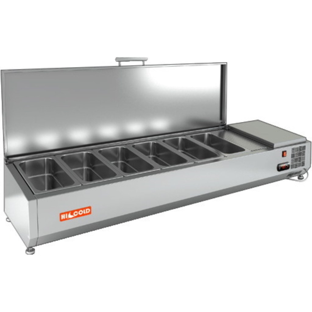 Витрина холодильная для ингредиентов HICOLD VRTU 1835 1/4 предназначена для охлаждения, кратковременного хранения и демонстрации ингредиентов, салатов и готовых блюд на предприятиях общественного питания, кафе и торговых точках.