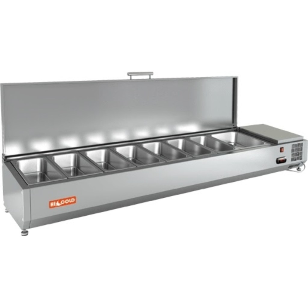 Каталог оборудования Холодильное оборудованиеВитрины для ингредиентовВитрина холодильная для ингредиентов HICOLD VRTU 1915 к PZ4 (1/3) Витрина холодильная для ингредиентов HICOLD VRTU 1915 к PZ4 (1/3) Код товара: 064-661 Поделиться: WhatsAppTelegram СравнитьДобавить в КПВ избранное 0 59 662 ₽ В корзину 0 шт Под заказСамовывоз сегодня бесплатно Взять в кредит Купить в лизинг Получить консультацию в WhatsApp Описание Характеристики Отзывы 0 Инструкции 3 Витрина холодильная для ингредиентов HICOLD VRTU 1915 к PZ4 (1/3) предназначена для охлаждения, кратковременного хранения и демонстрации ингредиентов, салатов и готовых блюд на предприятиях общественного питания и торговли. Устанавливается на холодильные столы для пиццы серии PZ4 благодаря встроенным креплениям в нижней части корпуса. На фото показана аналогичная модель с настольной установкой. Ключевые особенности: Корпус из нержавеющей стали — долговечность, простота ухода. Электронная панель управления — точная регулировка температуры. Исполнение U — оснащена крышкой для защиты продуктов. Высота витрины — 279 мм — компактное размещение на рабочей поверхности. Вместимость: 7 x GN1/3 + 1 x GN1/2 — рациональная организация хранения (гастроёмкости приобретаются отдельно). Совместимые модели столов: PZ4-11/GN HICOLD VRTU 1915 к PZ4 (1/3)— это профессиональная настольная витрина, которая сочетает компактные размеры, современное управление и высокое качество охлаждения. Отличный выбор для пиццерий, ресторанов и кафе, где важны удобство доступа, защита ингредиентов и скорость работы.Изображение товара, представленного на фото, может отличаться от его фактического вида. Показать все Габаритные размеры1915×385×279 ммДиапазон рабочей температурыот +2 до +7 °CДлина1915 ммГлубина385 ммВысота279 ммТип крышкиМеталлическая Гастроемкостей8 штТип гастроемкостейGN1/3 Напряжение220 ВТип охлажденияСтатическое Материал изготовленияНержавеющая сталь ХладагентR134 Мощность0,15 кВтВес нетто36 кгВес брутто76 кгТип оттайкиРучная Габариты в упаковке2015×485×379 ммБрендHicold Оставить отзыв Еще никто не оставил отзыв на этот товар Инструкция на HICOLD VRTU 1915 к PZ4.pdfСхема установки на витрину.jpgДекларация о соответствии.pdf Похожие товары Перейти в каталог Под заказ 89 848 ₽ Витрина холодильная для ингредиентов HICOLD VRTG 2360 1/3 В наличии 99 036 ₽ Витрина холодильная для ингредиентов TEFCOLD VK33-160 В наличии 54 640 ₽ Витрина холодильная для ингредиентов HICOLD VRTO 1835 1/3 В наличии 37 171 ₽ Витрина холодильная для ингредиентов HURAKAN HKN-VRX1200/380 Под заказ 43 893 ₽ Витрина для ингредиентов Carboma A40 SM 1,6 VT3-G Под заказ 36 710 ₽ Витрина холодильная для ингредиентов ФИНИСТ "ToppingBox" НХВк-2,5 Под заказ 45 567 ₽ Витрина холодильная для ингредиентов HICOLD VRTU 1000 1/4 В наличии 47 853 ₽ Витрина холодильная для ингредиентов Tatra TVR1400-6GN1/4 С этим товаром покупают В наличии 85 405 ₽ Стол холодильный среднетемпературный Cooleq SNACK2100TN/600 В наличии 39 073 ₽ Льдогенератор Cooleq IC-35 (кубики) В наличии 93 502 ₽ Шкаф холодильный Полюс Carboma R560 Ранее просмотрено Под заказ 68 518 ₽ Витрина холодильная для ингредиентов HICOLD VRTG 1915 к PZ4 (1/4)