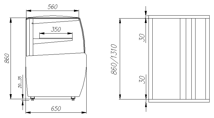 • Боковые прямые и переднее гнутое стекло — стильный внешний вид и удобный обзор товаров.
