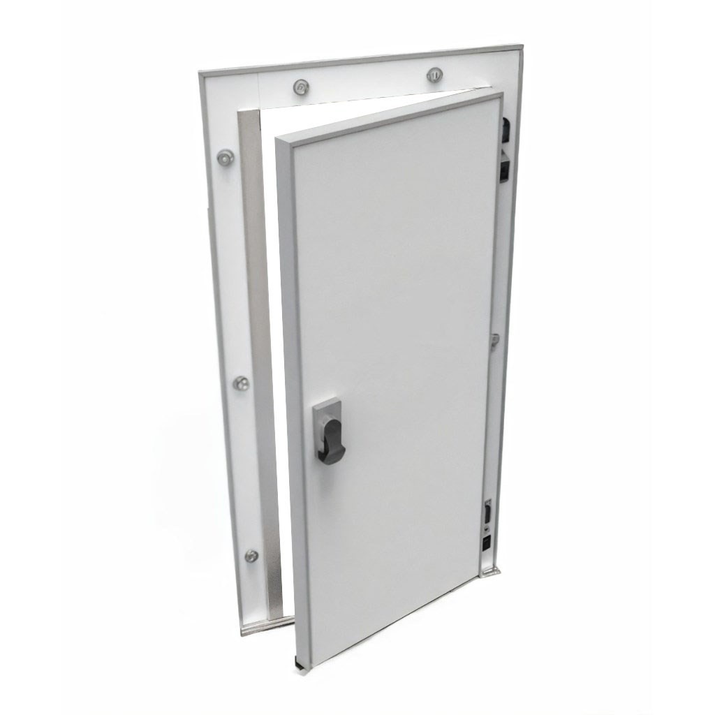 Каталог оборудования Холодильное оборудованиеДвери для холодильных камерРаспашные одностворчатые холодильные двериДверь холодильная распашная одностворчатая СТ-РДО-1000*1900/80 (с металлической рамой) Дверь холодильная распашная одностворчатая СТ-РДО-1000*1900/80 (с металлической рамой) Код товара: 065-858 Поделиться: WhatsAppTelegram СравнитьДобавить в КПВ избранное 0 36 483 ₽ В корзину 0 шт Под заказСамовывоз сегодня бесплатно Взять в кредит Купить в лизинг Получить консультацию в WhatsApp Описание Характеристики Отзывы 0 Инструкции 1 Дверь холодильная распашная одностворчатая СТ-РДО-1000*1900/80 (с металлической рамой) – это надежное и энергоэффективное решение для установки на предприятиях пищевой промышленности, в логистических центрах, на складах и терминалах. Дверь спроектирована для стабильной работы в условиях пониженных температур, что делает её оптимальным выбором для объектов с повышенными требованиями к сохранности продукции. В среднетемпературном исполнении СТ-80 дверь предназначена для эксплуатации при температурах до –5°. Особенности: Теплоизоляция: плита из пенополиуретана Dow Izolan высокой плотности (40–45 кг/м³) обеспечивает минимальные теплопотери, не содержит вредных хлорфторуглеродов и безопасна для пищевых производств. Пожаробезопасность: предел огнестойкости EI 15 позволяет использовать дверь в зонах с повышенными требованиями к безопасности. Конструкция: прочная рама из анодированного алюминия устойчива к коррозии, дверное полотно покрыто оцинкованной сталью толщиной 0,45–0,65 мм с полиэфирным слоем (RAL 9003), что обеспечивает долговечность и гигиеничность. Герметичность: двухконтурное резиновое уплотнение сотовой структуры на ПВХ-основе исключает мосты холода и обеспечивает надежное удержание температуры. Фурнитура: комплектуется надежной европейской фурнитурой. Замок оснащён системой аварийного открывания с флуоресцентной маркировкой, что исключает риск блокировки персонала внутри камеры. Холодильная дверь СТ-РДО-1000*1900/80 сочетает в себе прочность, долговечность и высокую энергоэффективность. Она гарантирует надежное сохранение температурного режима и безопасность эксплуатации, полностью соответствуя требованиям предприятий пищевой отрасли и объектов хранения.Изображение товара, представленного на фото, может отличаться от его фактического вида. Показать все Ширина светового проема1000 ммВысота светового проема1900 ммТемпературный режимСреднетемпературный (от -5 до +5) Толщина двери80 ммОткрываниеЛевое/Правое Замок с аварийным открываниемДа БрендСевер Оставить отзыв Еще никто не оставил отзыв на этот товар Буклет двери изотермические и технологические ТМ Север.pdf Ранее просмотрено Под заказ 39 770 ₽ Дверь холодильная распашная одностворчатая НТ-РДО-800*1800/80 (с металлической рамой) Под заказ 35 456 ₽ Дверь холодильная распашная одностворчатая СТ-РДО-1000*1800/80 (с металлической рамой)