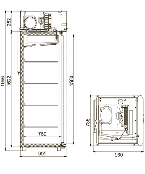 Каталог оборудования Холодильное оборудованиеШкафы холодильныеШкафы морозильные низкотемпературные до -18 °СШкаф морозильный Polair Polair CB107-Gm Alu Шкаф морозильный Polair Polair CB107-Gm Alu Код товара: 062-591 Поделиться: WhatsAppTelegram СравнитьДобавить в КПВ избранное 0 163 200 ₽ В корзину 0 шт Под заказСамовывоз сегодня бесплатно Взять в кредит Купить в лизинг Получить консультацию в WhatsApp Описание Характеристики Отзывы 0 Инструкции 4 Шкаф морозильный Polair Polair CB107-Gm Alu разработан для демонстрации и надежного хранения продуктов на предприятиях общественного питания и торговли. Цельнозаливной корпус выполнен из нержавеющей стали как снаружи, так и внутри (кроме задней стенки), что гарантирует высокую прочность и долговечность конструкции. Алюминиевые профили дверей и верхней панели подчеркивают современный и премиальный внешний вид шкафа. Оборудование рассчитано на работу при температуре окружающей среды до +40 °С и относительной влажности воздуха до 80%, что делает его надежным решением даже в сложных условиях эксплуатации. Основные особенности: Многофункциональная контрольная панель с жидкокристаллическим дисплеем Верхнее расположение агрегата, обеспечивающее удобный доступ к внутреннему объему Поддержка дистанционного мониторинга и записи данных в журнал контроллера (при использовании сетевой карты), а также передача данных через Bluetooth Клапан Шредера и компенсационный клапан с ПЭНом обогрева ПЭН обогрева трубки слива конденсата и ПЭН обогрева дверного проема для предотвращения образования наледи Распашные двери с полностью интегрированными ручками и эластичными магнитными уплотнителями, обеспечивающими максимальную герметизацию Микропереключатель, отключающий вентилятор и включающий подсветку при открытии дверей Встроенная внутренняя подсветка, улучшающая обзор содержимого Регулируемые по высоте ножки и педаль для удобного открывания двери Замок для обеспечения безопасности хранения 4 полки формата GN 2/1 (530×650 мм) с допустимой нагрузкой до 40 кг Толщина теплоизоляции корпуса — 61 мм Изображение товара, представленного на фото, может отличаться от его фактического вида. Показать все Габаритные размеры735×945×1996 ммДиапазон рабочей температурыдо -18 °CДлина735 ммГлубина450 ммВысота1996 ммОбъём700 лМатериал корпусаНержавеющая сталь Тип охлажденияДинамическое Тип управленияМеханическое Расход электроэнергии в сутки12 кВтКоличество полок2 штКоличество дверей1 штЗамокЕсть Тип двериМеталлическая Способ открыванияРаздвижные (купе) Напряжение220 ВХладагентR290 Расположение агрегатаНижнее Габариты в упаковке850×988×2160 ммВес нетто128 кгВес брутто152 кгБрендPolairВсе шкафы морозильные низкотемпературные до -18 °С POLAIRВсе шкафы морозильные низкотемпературные до -18 °С 4 уровня Оставить отзыв Еще никто не оставил отзыв на этот товар Схема POLAIR CB107-Gm Alu.jpgИнструкция на POLAIR CB107-Gm Alu.pdfДекларация о соответствии.pdfСертификат соответствия.pdf Похожие товары Перейти в каталог Под заказ 171 076 ₽ Шкаф морозильный МХМ Капри 1,12Н нержавейка В наличии 129 642 ₽ Шкаф морозильный Polair CB105-Sm Под заказ 127 794 ₽ Шкаф морозильный Ангара 700 М Под заказ 223 110 ₽ Шкаф морозильный Полюс Carboma F1400 INOX Под заказ 101 189 ₽ Шкаф морозильный для пресервов, икры TEFCOLD UF200VG В наличии 84 915 ₽ Шкаф морозильный Polair DB102-S В наличии 168 282 ₽ Шкаф морозильный Tatra TRC700 BT Под заказ 215 610 ₽ Шкаф морозильный Abat ШХн-1,4-01 нерж. С э