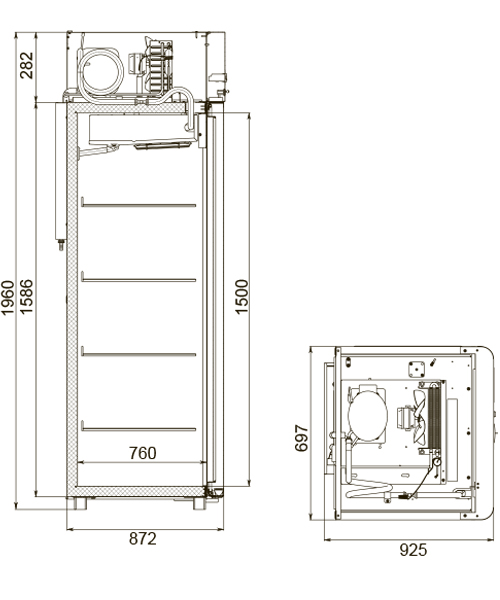 Каталог оборудования Холодильное оборудованиеШкафы холодильныеШкафы холодильные универсальные от -5 до +5 °СШкаф холодильный универсальный Polair CV107-Sm Alu Шкаф холодильный универсальный Polair CV107-Sm Alu Код товара: 062-611 Поделиться: WhatsAppTelegram СравнитьДобавить в КПВ избранное 0 129 370 ₽ В корзину 0 шт Под заказСамовывоз сегодня бесплатно Взять в кредит Купить в лизинг Получить консультацию в WhatsApp Описание Характеристики Отзывы 0 Инструкции 4 Шкаф холодильный универсальный Polair CV107-Sm Alu предназначен для демонстрации и надежного хранения продуктов на предприятиях общественного питания и торговли. Цельнозаливной корпус выполнен из стали с полимерным покрытием и оснащен алюминиевыми профилями, что обеспечивает высокую прочность конструкции и долговечность, а также подчеркивает современный премиальный дизайн. Шкаф работает при температуре окружающей среды до 40 °С и влажности воздуха до 80%. Особенности модели: Контрольная панель с быстрым доступом к настройкам, удобным возвратом в предыдущее меню и возможностью полного отключения без отдельной кнопки. Жидкокристаллический дисплей для наглядного отображения параметров. Клапан Шредера для обслуживания холодильной системы. Компенсационный клапан с ПЭНом обогрева, ПЭНы обогрева трубки слива конденсата и дверного проема — предотвращают образование льда и обеспечивают надежную работу. Распашной тип двери с возможностью изменения стороны открывания, что делает установку более гибкой. Полностью интегрированные ручки, удобные и стильные. Эластичные уплотнители с магнитными вставками для максимальной герметизации. Внутренняя подсветка вынесена на нижнюю часть фронтальной панели. Микропереключатель для автоматического отключения вентилятора и включения подсветки при открытии дверей. Регулируемые по высоте ножки для устойчивости на любом полу. Педаль для удобного открывания без рук. Замок для защиты содержимого. Высокая допустимая нагрузка на полку — до 40 кг. Размер полки: GN 2/1 (530×650 мм). Толщина стенки корпуса — 43 мм, что обеспечивает отличную теплоизоляцию. Polair CV107-Sm Alu — это функциональный и надежный холодильный шкаф с современным дизайном, который обеспечивает максимальную сохранность и удобный доступ к продуктам. Отлично подходит для ресторанов, кафе и магазинов, где важны надежность, стиль и энергоэффективность.Изображение товара, представленного на фото, может отличаться от его фактического вида. Показать все Габаритные размеры697×925×1960 ммДиапазон рабочей температурыот -5 до +5 °CДлина697 ммГлубина925 ммВысота1960 ммОбъём700 лРазмер полки530×650 ммКоличество полок4 штКоличество дверей1 штТип оттайкиАвтоматическая Тип охлажденияДинамическое Тип управленияЭлектронное Материал корпусаНержавеющая сталь Тип двериМеталлическая ЗамокЕсть Способ открыванияРаспашные ХладагентR290 Холодильный агрегатВстроенный Расположение агрегатаВерхнее Потребление электроэнергии в сутки4,5 кВтПотребляемая мощность0,4 кВтНапряжение220 ВГабариты в упаковке800×1000×2150 ммВес нетто113 кгВес брутто138 кгБрендPolairВсе шкафы холодильные универсальные от -5 до +5 °С Из нержавейки Оставить отзыв Еще никто не оставил отзыв на этот товар Схема POLAIR CV107-Sm.jpgИнструкция на POLAIR CV107-Sm.pdfДекларация о соответствии.pdfСертификат соответствия.pdf Похожие товары Перейти в каталог В наличии 95 191 ₽ Шкаф холодильный универсальный Polair 