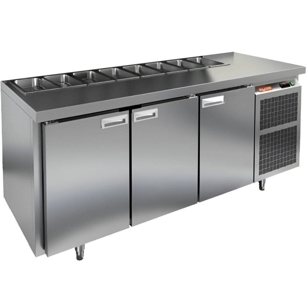 Каталог оборудования Холодильное оборудованиеСтолы охлаждаемыеСтолы холодильные для салатовСтол холодильный для салатов HiCold SL1-111SN (1/3) О без крышки Стол холодильный для салатов HiCold SL1-111SN (1/3) О без крышки Код товара: 064-522 Поделиться: WhatsAppTelegram СравнитьДобавить в КПВ избранное 0 163 162 ₽ В корзину 0 шт Под заказСамовывоз сегодня бесплатно Взять в кредит Купить в лизинг Получить консультацию в WhatsApp Описание Характеристики Отзывы 0 Инструкции 2 Стол холодильный для салатов HiCold SL1-111SN (1/3) О без крышки предназначен для предприятий общественного питания и торговли. Он обеспечивает хранение и подготовку ингредиентов для пиццы, салатов и других блюд, а также охлаждение и кратковременное хранение скоропортящихся продуктов. Модель сочетает рабочую поверхность и холодильный объем, позволяя повару иметь все необходимые компоненты под рукой. Корпус и столешница выполнены из нержавеющей стали, обеспечивая надежность и долговечность. Особенности: Динамическая система охлаждения — равномерное распределение температуры внутри холодильного объема. Автоматическая оттайка — упрощает уход за оборудованием. Электронная панель управления — точная настройка температуры и режимов работы. 3 вместительные внутренние полки формата GN 1/1 — удобное хранение ингредиентов. Автоматические доводчики дверей с фиксатором открытого положения — комфорт и безопасность работы. Легкозаменяемые магнитные уплотнители — простота обслуживания. Открытая агрегатная часть — облегчает доступ для обслуживания. Регулируемые по высоте ножки — адаптация к рабочей поверхности. Столешница без борта и без крышки, толщина столешницы и теплоизоляции 50 мм — надежная защита и удобство работы. Размер полки: 430×320мм (GN 1/1) Максимальная глубина гастроемкостей: 100 мм HiCold SL1-111SN (1/3) О без крышки — многофункциональный и надежный стол для профессиональной кухни. Обеспечивает удобство работы, эффективное охлаждение и безопасное хранение продуктов. Мобильная модификация с колёсами позволяет легко перемещать стол, что делает его идеальным для ресторанов, кафе и пиццерий.Изображение товара, представленного на фото, может отличаться от его фактического вида. Показать все Габаритные размеры1835×600×850 ммДиапазон рабочей температурыот +2 до +10 °CРасположение агрегатаБоковое Материал столешницыНержавеющая Тип столаС дверьми Тип двериГлухая Объём435 лКоличество дверей3 штТип гастроемкостейGN 1/3 Размер полки430×320 ммНапряжение220 ВМощность0,46 кВтТип охлажденияДинамический Тип оттайкиАвтоматическая СтолешницаБез борта Вес нетто120 кгВес брутто183 кгБрендHicold Оставить отзыв Еще никто не оставил отзыв на этот товар Паспорт на HICOLD SL1-111SN О.pdfДекларация о соответствии.pdf Ранее просмотрено Под заказ 192 411 ₽ Стол холодильный для салатов HiCold SL1-1111GN (1/3) без крышки