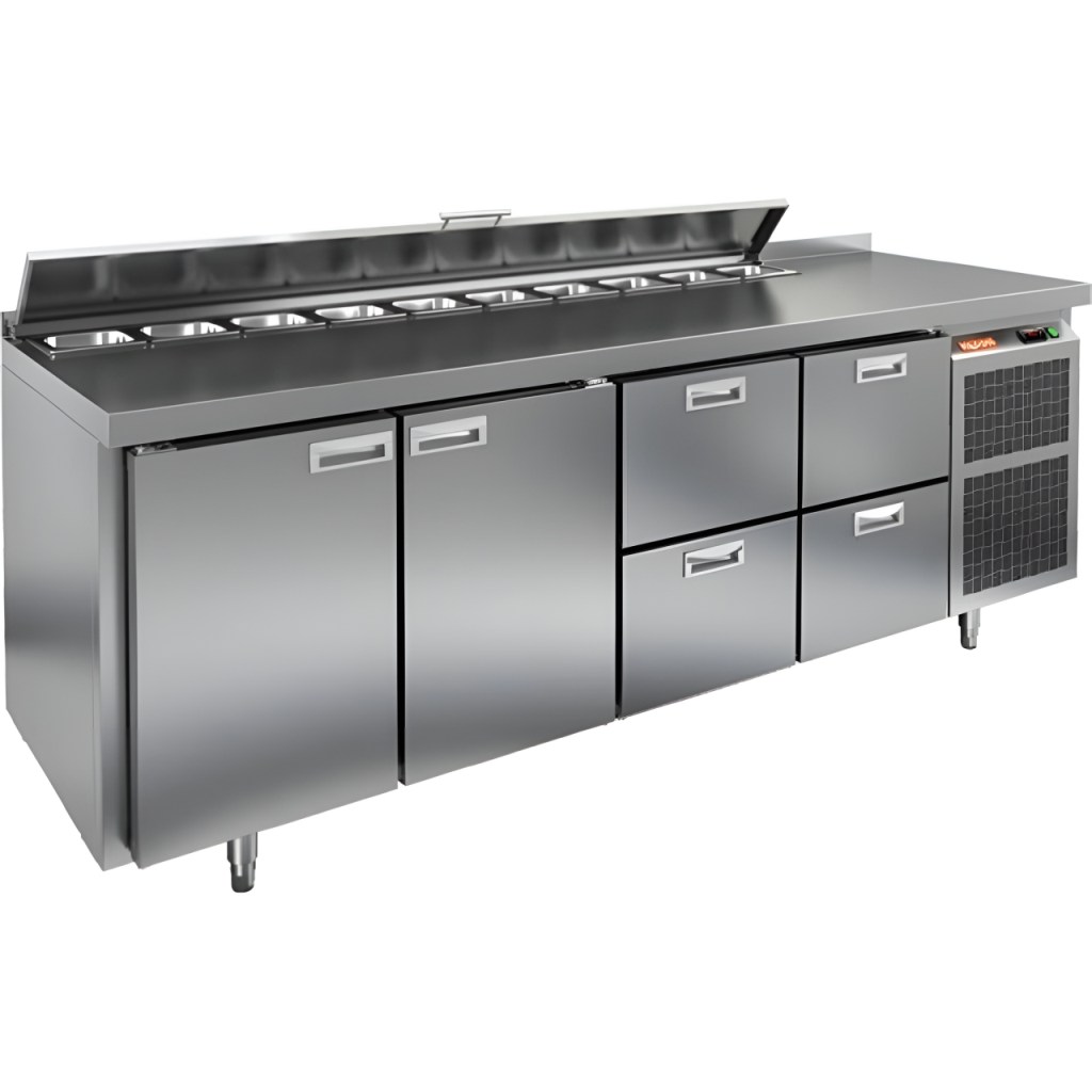Каталог оборудования Холодильное оборудованиеСтолы охлаждаемыеСтолы холодильные для салатовСтол холодильный для салатов HiCold SL1-332GN (1/3) с крышкой Стол холодильный для салатов HiCold SL1-332GN (1/3) с крышкой Код товара: 064-851 Поделиться: WhatsAppTelegram СравнитьДобавить в КПВ избранное 0 290 692 ₽ В корзину 0 шт Под заказСамовывоз сегодня бесплатно Взять в кредит Купить в лизинг Получить консультацию в WhatsApp Описание Характеристики Отзывы 0 Инструкции 1 Стол холодильный для салатов HiCold SL1-332GN (1/3) предназначен для использования на предприятиях общественного питания и торговли. Он объединяет рабочую поверхность и охлаждаемый отсек, что делает его удобным решением для хранения, охлаждения и подготовки ингредиентов при приготовлении салатов, пиццы и других блюд. Такая конструкция позволяет повару работать быстрее и эффективнее, так как все необходимые продукты находятся под рукой. Корпус и столешница выполнены из прочной нержавеющей стали, устойчивой к коррозии и легко поддающейся санитарной обработке. Металлическая крышка защищает продукты от загрязнений и сохраняет их свежесть. Особенности модели: Электронная панель управления — точная настройка температурного режима. 8 выдвижных ящика — быстрое размещение и замена продуктов. Вместимость салат-бара — до 8 гастроемкостей глубиной до 100 мм. Автоматические доводчики — комфорт при загрузке/выгрузке. Легкозаменяемые магнитные уплотнители — надежная герметичность. Открытая агрегатная часть — быстрый доступ для обслуживания. Регулируемые по высоте ножки — устойчивость даже на неровном полу. Толщина столешницы, борта и теплоизоляции — 50 мм, что обеспечивает прочность и энергоэффективность конструкции. HiCold SL1-332GN (1/3) — практичное и удобное решение для профессиональной кухни, обеспечивающее удобную подготовку и хранение ингредиентов.Изображение товара, представленного на фото, может отличаться от его фактического вида. Показать все Габаритные размеры1835×700×850 ммДиапазон рабочей температурыот +2 до +10 °CРасположение агрегатаБоковое Материал столешницыНержавеющая Тип столаС дверьми и ящиками Тип двериГлухая Объём505 лКоличество дверей2 штТип гастроемкостейGN 1/3 Количество ящиков6 штРазмер полки530×325 ммНапряжение220 ВМощность0,46 кВтТип охлажденияДинамическое Тип оттайкиАвтоматическая СтолешницаС бортом Габариты в упаковке2000×850×1000 ммВес нетто120 кгВес брутто140 кгБрендHicold Оставить отзыв Еще никто не оставил отзыв на этот товар Декларация о соответствии.pdf Ранее просмотрено Под заказ 207 532 ₽ Стол холодильный для салатов HiCold SLE3-1111GN высокое стекло Под заказ 164 961 ₽ Стол холодильный для салатов HiCold SL2-11SN (1/6) М с крышкой Под заказ 243 982 ₽ Стол холодильный для салатов HiCold SL2-321GN (1/6) с крышкой Под заказ 178 192 ₽ Стол холодильный для салатов HiCold SLE1-112GN (1/3) О с крышкой