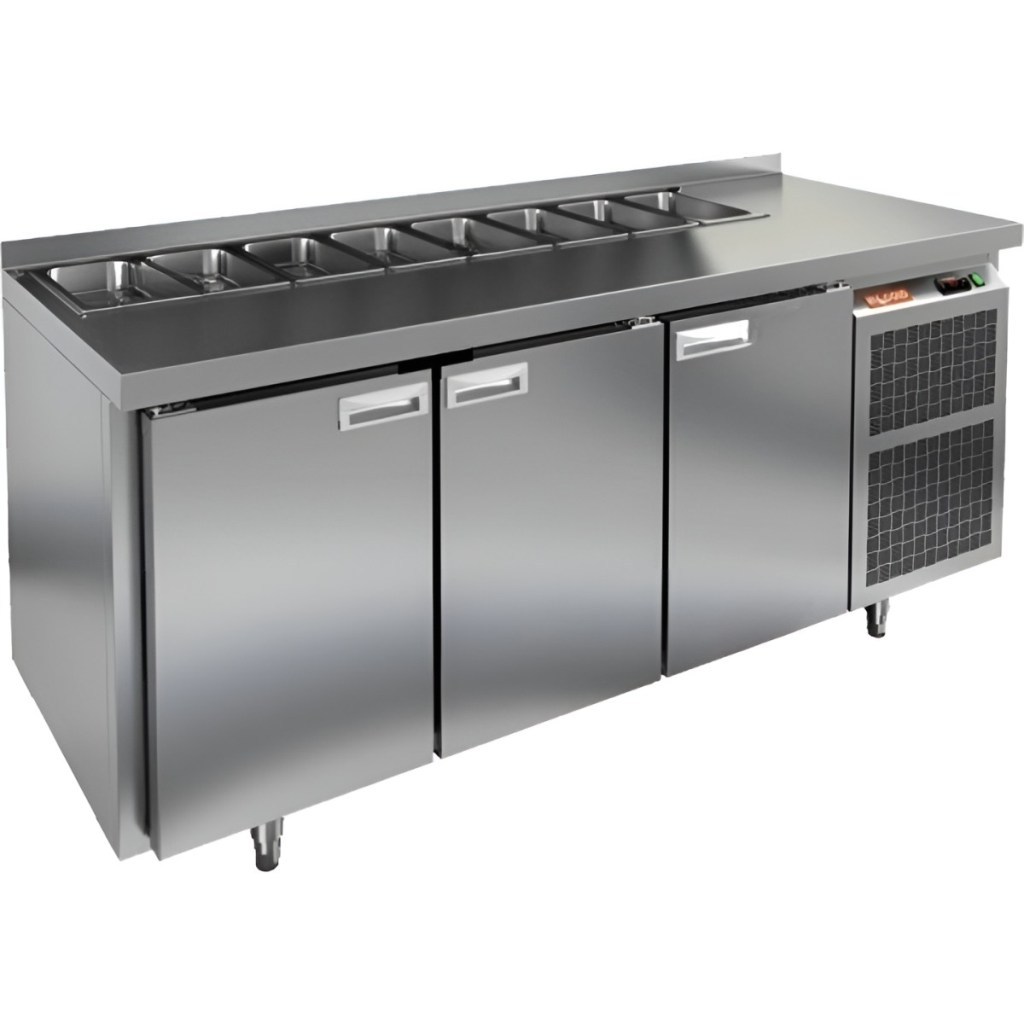 Каталог оборудования Холодильное оборудованиеСтолы охлаждаемыеСтолы холодильные для салатовСтол холодильный для салатов HiCold SL2-111SN (1/6) без крышки Стол холодильный для салатов HiCold SL2-111SN (1/6) без крышки Код товара: 064-807 Поделиться: WhatsAppTelegram СравнитьДобавить в КПВ избранное 0 163 612 ₽ В корзину 0 шт Под заказСамовывоз сегодня бесплатно Взять в кредит Купить в лизинг Получить консультацию в WhatsApp Описание Характеристики Отзывы 0 Инструкции 2 Стол холодильный для салатов HiCold SL2-111SN (1/6) без крышки применяется на предприятиях общественного питания и торговли для хранения ингредиентов, используемых при приготовлении салатов, пиццы и других блюд. Совмещает рабочую поверхность и охлаждаемый отсек, что упрощает работу персонала. Корпус и столешница выполнены из прочной и гигиеничной нержавеющей стали. Столешница с бортом предотвращает скатывание и проливание ингредиентов, обеспечивая аккуратность рабочего пространства. Важно: на фото представлена аналогичная модель с крышкой. Особенности: Электронная панель управления — точная настройка температуры и режимов. 3 полки формата GN 1/1 — вместительное внутреннее хранение. Салат-бар на 8 гастроемкостей — удобная организация ингредиентов. Автоматические доводчики дверей — комфортная эксплуатация. Съёмные магнитные уплотнители — простота замены и герметичность. Открытая агрегатная часть — лёгкий доступ к оборудованию. Регулируемые ножки — установка на любом покрытии. Гастроемкости до 100 мм глубиной, столешница и бортик — по 50 мм, теплоизоляция — 50 мм. HiCold SL2-111SN без крышки — удобный, вместительный и надёжный стол для профессиональной кухни. Идеален для быстрого доступа к охлаждённым ингредиентам в процессе приготовления.Изображение товара, представленного на фото, может отличаться от его фактического вида. Показать все Габаритные размеры1835×600×850 ммДиапазон рабочей температурыот +2 до +10 °CРасположение агрегатаБоковое Материал столешницыНержавеющая Тип столаС дверьми Тип двериГлухая Объём435 лКоличество дверей3 штТип гастроемкостейGN 1/6 Размер полки430×325 ммНапряжение220 ВМощность0,46 кВтТип охлажденияДинамическое Тип оттайкиАвтоматическая СтолешницаС бортом Вес нетто120 кгВес брутто184 кгБрендHicold Оставить отзыв Еще никто не оставил отзыв на этот товар Паспорт на HICOLD SL2-111SN.pdfДекларация о соответствии.pdf Ранее просмотрено Под заказ 164 061 ₽ Стол холодильный для салатов HiCold SL2-111GN (1/6) без крышки Под заказ 189 981 ₽ Стол холодильный для салатов HiCold SL2-111GN (1/6) М с крышкой Под заказ 174 501 ₽ Стол холодильный для салатов HiCold SLE3-1111GN О без крышки Под заказ 319 402 ₽ Стол холодильный для салатов HiCold SLE3-2222GN М без крышки В наличии 124 191 ₽ Стол холодильный для салатов HiCold SLE1-11GN (1/3) с крышкой Под заказ 294 202 ₽ Стол холодильный для салатов HiCold SLE2-2222GN (1/6) с крышкой Под заказ 147 591 ₽ Стол холодильный для салатов HiCold SLE1-111GN (1/3) О с крышкой
