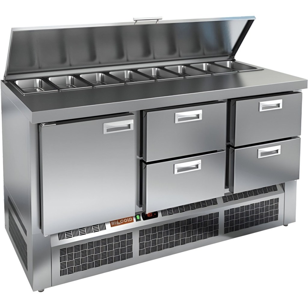 HiCold SLE1-222GN (1/3) О с крышкой — это практичное и многофункциональное решение для профессиональной кухни. Благодаря вместительности, продуманной конструкции и надежной термоизоляции, стол позволяет организовать эффективное рабочее пространство и обеспечивает сохранность свежести продуктов в течение всего рабочего дня.