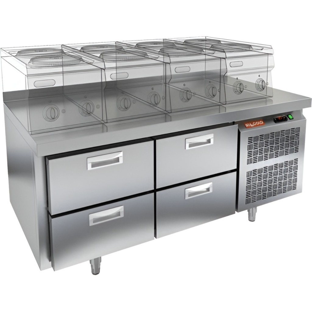 Каталог оборудования Холодильное оборудованиеСтолы охлаждаемыеСтолы холодильные под тепловое оборудованиеСтол охлаждаемый HiCold GN 22/TN LT SH под тепловое оборудование Стол охлаждаемый HiCold GN 22/TN LT SH под тепловое оборудование Код товара: 065-423 Поделиться: WhatsAppTelegram СравнитьДобавить в КПВ избранное 0 170 812 ₽ В корзину 0 шт Под заказСамовывоз сегодня бесплатно Взять в кредит Купить в лизинг Получить консультацию в WhatsApp Описание Характеристики Отзывы 0 Инструкции 2 Стол охлаждаемый HiCold GN 22/TN LT SH под тепловое оборудование предназначен для обработки ингредиентов и временного хранения скоропортящихся продуктов и напитков на предприятиях общественного питания и торговли. Устройство совмещает функции рабочей поверхности и холодильной камеры. Столешница рассчитана на установку теплового оборудования: под рабочей поверхностью встроен ДСП-лист, который укрепляет конструкцию и препятствует проникновению тепла внутрь. Такое решение обеспечивает дополнительную жесткость, позволяет рационально использовать рабочее пространство и повышает эффективность работы на кухне. Особенности: 4 выдвижных ящика — быстрое и удобное хранение ингредиентов. Автоматические доводчики дверей с фиксатором открытого положения повышают эргономику и способствуют сохранению холода. Легкозаменяемые магнитные уплотнители обеспечивают плотное прилегание дверей и лёгкость в обслуживании. Открытая агрегатная часть упрощает доступ к компрессору при техническом обслуживании. Конструкция на низких ножках обеспечивает стабильность и удобство эксплуатации. Толщина столешницы — 50 мм обеспечивает прочность рабочей поверхности. Высота борта — 50 мм предотвращает падение продуктов и инвентаря. Толщина теплоизоляции — 50 мм способствует энергоэффективности и стабильному температурному режиму. HiCold GN 22/TN LT SH — это надёжный и практичный холодильный стол с выдвижными ящиками, идеально подходящий для профессиональных кухонь. Его конструкция создана для обеспечения удобства, гигиеничности и эффективности в условиях интенсивной эксплуатации.Изображение товара, представленного на фото, может отличаться от его фактического вида. Показать все Габаритные размеры1390×700×610 ммДиапазон рабочей температурыот -2 до +10 °CМатериал столешницыНержавеющая Расположение агрегатаБоковое Объём255 лТип столаС ящиками Количество ящиков4 штНапряжение220 ВМощность0,22 кВтТип охлажденияДинамический Тип оттайкиАвтоматическая СтолешницаС бортом Габариты в упаковке1550×850×850 ммВес нетто98 кгВес брутто109 кгБрендHicold Оставить отзыв Еще никто не оставил отзыв на этот товар Паспорт на HICOLD GN 22TN LT SH.pdfДекларация о соответствии.pdf Похожие товары Перейти в каталог В наличии 77 661 ₽ Стол холодильный среднетемпературный HiCold GN 11/TN W Под заказ 125 670 ₽ Стол холодильный среднетемпературный Abat СХС-70-01 с бортом (дверь, дверь) С этим товаром покупают В наличии 201 690 ₽ Шкаф морозильный Полюс Carboma F1400 В наличии 195 030 ₽ Плита индукционная Аbat КИП-47Н Ранее просмотрено Под заказ 159 202 ₽ Стол охлаждаемый HiCold GN 1111/TN LT SH под тепловое оборудование Под заказ 191 872 ₽ Стол морозильный HiCold GN 22/BT LT под тепловое оборудование Под заказ 283 402 ₽ Стол охлаждаемый HiCold GN 2222/TN LT О под тепловое оборудование Под заказ 191 692 ₽ Стол охлаждаемый HiCold GN 122/TN LT О SH под тепловое оборудование Под заказ 322 788 ₽ Агрегат компрессорный-конденсаторный МХМ БК