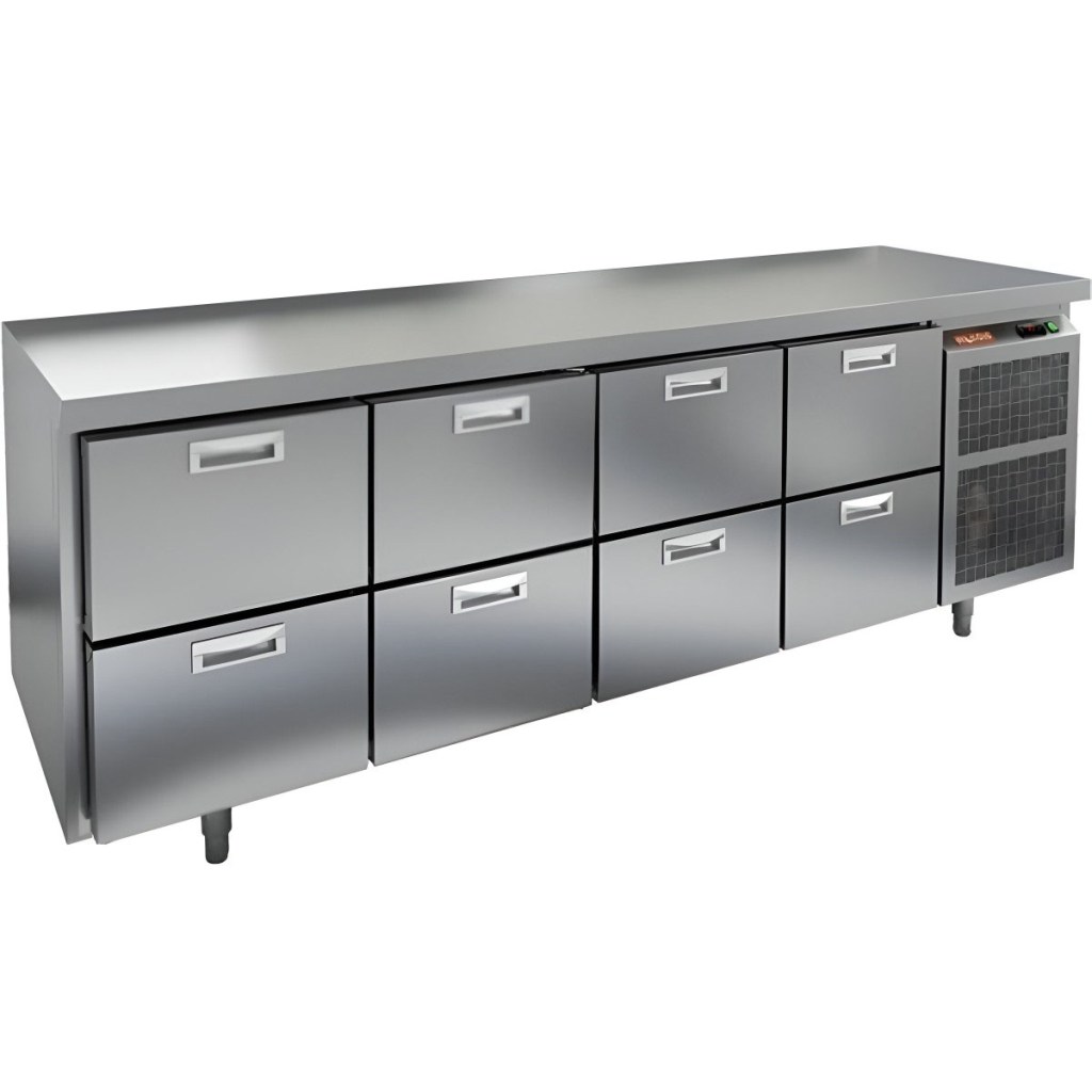 Каталог оборудования Холодильное оборудованиеСтолы охлаждаемыеСтолы холодильные среднетемпературныеСтол холодильный среднетемпературный HiCold GN 2222/TN О М Стол холодильный среднетемпературный HiCold GN 2222/TN О М Код товара: 065-427 Поделиться: WhatsAppTelegram СравнитьДобавить в КПВ избранное 0 312 291 ₽ В корзину 0 шт Под заказСамовывоз сегодня бесплатно Взять в кредит Купить в лизинг Получить консультацию в Max Описание Характеристики Отзывы 0 Инструкции 2 Стол холодильный среднетемпературный HiCold GN 2222/TN О М — это профессиональное оборудование, предназначенное для кратковременного хранения скоропортящихся продуктов и напитков, а также удобной подготовки ингредиентов на предприятиях общественного питания и торговли. Модель сочетает функциональность, надежность и эргономичный дизайн. Ключевые особенности: 8 выдвижных ящиков обеспечивают удобный доступ к продуктам и рациональную организацию пространства. Электронная панель управления позволяет просто и точно регулировать температуру. Автоматические доводчики обеспечивают мягкое и плотное закрывание ящиков. Легкозаменяемые магнитные уплотнители гарантируют надежную герметичность. Колёса (2 со стопором, 2 без стопора) — обеспечивают мобильность и удобство размещения стола на кухне. Корпус и столешница из нержавеющей стали обеспечивают долговечность, устойчивость к коррозии и простоту в уходе. Столешница без борта, толщина 50 мм — увеличенная рабочая площадь, устойчивая к нагрузкам и механическому воздействию. Толщина теплоизоляции — 50 мм способствует энергоэффективности и стабильному температурному режиму. Рабочий температурный режим сохраняется при температуре окружающей среды от +12 до +37 °C. HiCold GN 2222/TN О М — это многофункциональный холодильный стол, идеально подходящий для профессиональной кухни. Конструкция позволяет удобно распределять ингредиенты, а эргономичные выдвижные модули обеспечивают быстрый доступ к продуктам. Высокое качество материалов, надежные комплектующие и простота эксплуатации делают этот стол незаменимым помощником в условиях интенсивной ежедневной работы.Изображение товара, представленного на фото, может отличаться от его фактического вида. Показать все Габаритные размеры2280×700×850 ммДиапазон рабочей температурыот -2 до +10 °CРасположение агрегатаБоковое Материал столешницыНержавеющая Тип столаС ящиками Объём660 лКоличество ящиков8 штНапряжение220 ВМощность0,48 кВтТип охлажденияДинамический Тип оттайкиАвтоматическая СтолешницаБез борта Габариты в упаковке2420×850×1000 ммВес нетто150 кгВес брутто190 кгБрендHicoldВсе холодильные столы HicoldВсе нержавеющие холодильные столы Все холодильные столы без борта Оставить отзыв Еще никто не оставил отзыв на этот товар Паспорт на HICOLD GN 2222/TN О М.pdfДекларация о соответствии.pdf Похожие товары Перейти в каталог Под заказ 148 851 ₽ Стол холодильный среднетемпературный HiCold SN 1111/TN W В наличии 119 067 ₽ Стол холодильный среднетемпературный Polair TM4GN-GС С этим товаром покупают В наличии 181 658 ₽ Шкаф холодильный универсальный Polair CV 114-G В наличии 9 838 ₽ Индукционная плита HURAKAN HKN-ICW35ML WOK Ранее просмотрено Под заказ 140 391 ₽ Стол холодильный среднетемпературный HiCold GNE 12/TN З
