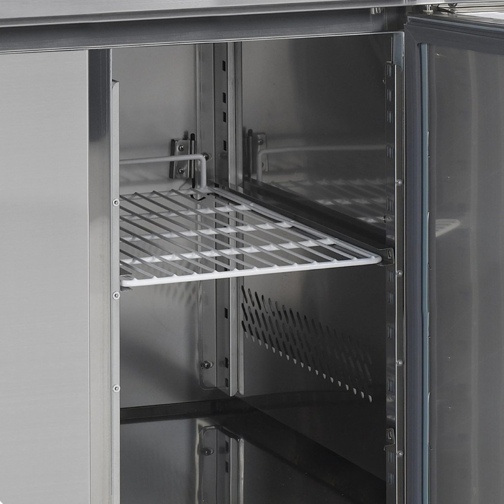 Каталог оборудования Холодильное оборудованиеСтолы охлаждаемыеСтолы морозильные низкотемпературныеСтол морозильный TEFCOLD CF7210 Стол морозильный TEFCOLD CF7210 Код товара: 010-256 Поделиться: WhatsAppTelegram СравнитьДобавить в КПВ избранное 0 187 268 ₽ В корзину 0 шт В наличииСамовывоз сегодня бесплатно Взять в кредит Купить в лизинг Получить консультацию в WhatsApp Описание Характеристики Отзывы 0 Стол морозильный TEFCOLD CF7210 — профессиональное оборудование, объединяющее рабочую поверхность и морозильную камеру. Используется для приготовления, охлаждения и хранения полуфабрикатов, напитков и готовых блюд. Конструкция включает стальную столешницу, двухсекционную морозильную камеру для контейнеров формата GN 1/1 и задний борт, предотвращающий загрязнение стены. Дверцы и ящики оснащены эргономичными ручками и магнитными уплотнителями для плотного закрытия. Особенности модели: Корпус и внутренняя отделка из нержавеющей стали AISI304 Вентилируемое охлаждение — равномерное распределение холода Автоматическое размораживание — стабильная работа без наледи Самозакрывающаяся дверь Съёмная столешница — удобство уборки и обслуживания Регулируемые по высоте ножки — устойчивость на любой поверхности Электронный термостат — точный контроль температуры Возможность комбинирования с холодильным вариантом Климатический класс ST — работа при температуре до +38 °C Внутренние размеры камеры: 902×530×589 мм Потребление энергии: 8,2 кВт/24 ч Уровень шума: 45 дБ(А) TEFCOLD CF7210 — универсальный морозильный стол для профессиональных кухонь. Он сочетает рабочую поверхность с морозильной камерой, обеспечивая удобство работы, эффективное хранение продуктов и высокую надёжность благодаря качественным материалам и продуманной конструкции.Изображение товара, представленного на фото, может отличаться от его фактического вида. Показать все Габаритные размеры1360×700×980 ммДиапазон рабочей температурыот -20 до -10 °CРасположение агрегатаБоковое Материал столешницыНержавеющая Тип столаС дверьми Тип двериГлухая Общий объем282 лПолезный объем272 лКоличество дверей2 штНапряжение230 ВРасход электроэнергии в сутки6,95 кВт/сутТип охлажденияДинамическое Тип оттайкиАвтоматическая ХладагентR290 СтолешницаС бортом Уровень шума42 дБГабариты в упаковке1405×750×1010 ммВес нетто103 кгВес брутто118 кгБрендTefcoldВсе морозильные столы с бортом Оставить отзыв Еще никто не оставил отзыв на этот товар Похожие товары Перейти в каталог Под заказ 108 783 ₽ Стол морозильный HURAKAN HKN-GN2BT Под заказ 132 842 ₽ Стол морозильный Abat СХН-60-01 без борта (дверь, дверь) С этим товаром покупают В наличии 152 150 ₽ Шкаф холодильный универсальный Polair CV 114-S В наличии 46 639 ₽ Витрина холодильная для ингредиентов TEFCOLD VK33-120 В наличии 162 910 ₽ Плита индукционная Аbat КИП-47Н-5,0 Ранее просмотрено Под заказ 70 338 ₽ Дверь холодильная распашная одностворчатая НТ-РДО-1400*1856/120