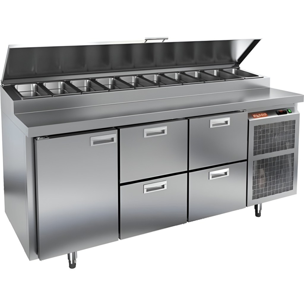 Каталог оборудования Холодильное оборудованиеСтолы охлаждаемыеСтолы холодильные для пиццыСтол холодильный для пиццы HiCold PZ1-122N (1/3) Стол холодильный для пиццы HiCold PZ1-122N (1/3) Код товара: 064-709 Поделиться: WhatsAppTelegram СравнитьДобавить в КПВ избранное 0 275 572 ₽ В корзину 0 шт Под заказСамовывоз сегодня бесплатно Взять в кредит Купить в лизинг Получить консультацию в Max Описание Характеристики Отзывы 0 Стол холодильный для пиццы HiCold PZ1-122GN (1/3) — профессиональное оборудование для предприятий общественного питания и торговли. Он сочетает рабочую поверхность для раскатки теста и подготовки ингредиентов с охлаждаемым блоком для кратковременного хранения скоропортящихся продуктов и напитков. Такое решение обеспечивает максимальное удобство — все необходимые компоненты всегда находятся под рукой. Корпус и столешница выполнены из нержавеющей стали, что гарантирует долговечность, устойчивость к повреждениям и лёгкость ухода. Основные особенности: Нержавеющая столешница и корпус — прочность, гигиеничность и лёгкость очистки Динамическая система охлаждения — равномерное распределение холода Автоматическая оттайка — стабильная работа без образования наледи Электронная панель управления — точная настройка температуры 1 дверца и 4 выдвижных ящика — удобная организация внутреннего пространства Автоматические доводчики дверцы и ящиков — комфорт при работе Легкозаменяемые магнитные уплотнители — поддержание герметичности Открытая агрегатная часть — лёгкий доступ для обслуживания Регулируемые по высоте ножки — установка на неровных поверхностях Максимальная глубина гастроёмкостей: 100 мм Глубина рабочей поверхности: 324 мм Толщина столешницы и теплоизоляции: 50 мм Вместимость салат-бара: до 10 гастроёмкостей Стол холодильный HiCold PZ1-122GN (1/3) — надёжный и функциональный холодильный стол для пиццы и салатов. Продуманная организация хранения и удобство эксплуатации обеспечивают быстрый доступ к ингредиентам и высокую производительность на профессиональной кухне.Изображение товара, представленного на фото, может отличаться от его фактического вида. Показать все Габаритные размеры1835×700×1000 ммДиапазон рабочей температурыот +2 до +10 °CРасположение агрегатаБоковое Материал столешницыНержавеющая Тип столаС дверьми и ящиками Тип двериГлухая Объём505 лТип гастроемкостейGN 1/3 Количество дверей1 штКоличество ящиков4 штРазмер полки530×325 ммНапряжение220 ВМощность0,5 кВтТип охлажденияДинамическое Тип оттайкиАвтоматическая Габариты в упаковке2000×850×1140 ммВес нетто172 кгВес брутто200 кгБрендHicoldВсе холодильные столы для пиццы HicoldВсе нержавеющие холодильные столы для пиццы Оставить отзыв Еще никто не оставил отзыв на этот товар Ранее просмотрено Под заказ 229 941 ₽ Стол холодильный для пиццы HiCold PZ1-13/GN (1/3) Под заказ 278 361 ₽ Стол холодильный для пиццы HiCold PZE1-222GN (1/3) Под заказ 247 761 ₽ Стол холодильный для пиццы HiCold PZE2-221/GN (1/6H) НовинкаПод заказ 139 358 ₽ Стол морозильный низкотемпературный Polair TBi2GN-20-G Под заказ 217 161 ₽ Стол холодильный для пиццы HiCold PZE2-211/GN (1/6H)