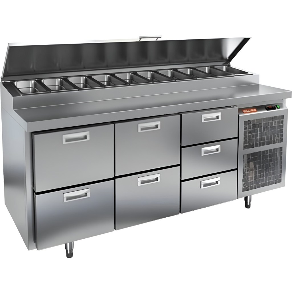 Каталог оборудования Холодильное оборудованиеСтолы охлаждаемыеСтолы холодильные для пиццыСтол холодильный для пиццы HiCold PZ1-223GN (1/3H) Стол холодильный для пиццы HiCold PZ1-223GN (1/3H) Код товара: 064-711 Поделиться: WhatsAppTelegram СравнитьДобавить в КПВ избранное 0 321 471 ₽ В корзину 0 шт Под заказСамовывоз сегодня бесплатно Взять в кредит Купить в лизинг Получить консультацию в WhatsApp Описание Характеристики Отзывы 0 Стол холодильный для пиццы HiCold PZ1-223GN (1/3H) — профессиональное оборудование для предприятий общественного питания и торговли. Он сочетает рабочую поверхность для раскатки теста и подготовки ингредиентов с охлаждаемым блоком для кратковременного хранения скоропортящихся продуктов и напитков. Такое решение обеспечивает максимальное удобство — все необходимые компоненты всегда находятся под рукой. Корпус и столешница выполнены из нержавеющей стали, что гарантирует долговечность, устойчивость к повреждениям и лёгкость ухода. Основные особенности: Нержавеющая столешница и корпус — прочность, гигиеничность и лёгкость очистки Динамическая система охлаждения — равномерное распределение холода Автоматическая оттайка — стабильная работа без образования наледи Электронная панель управления — точная настройка температуры 7 выдвижных ящиков — удобная организация внутреннего пространства без дверцы Автоматические доводчики ящиков — комфорт при работе Легкозаменяемые магнитные уплотнители — поддержание герметичности Открытая агрегатная часть — лёгкий доступ для обслуживания Регулируемые по высоте ножки — установка на неровных поверхностях Максимальная глубина гастроёмкостей: 100 мм Глубина рабочей поверхности: 324 мм Толщина столешницы и теплоизоляции: 50 мм Вместимость салат-бара: до 10 гастроёмкостей Стол холодильный HiCold PZ1-223GN (1/3H) — надёжный и функциональный холодильный стол для пиццы и салатов. Отсутствие дверцы и продуманная система хранения обеспечивают быстрый доступ к ингредиентам, удобство эксплуатации и высокую производительность на профессиональной кухне.Изображение товара, представленного на фото, может отличаться от его фактического вида. Показать все Габаритные размеры1835×700×1000 ммДиапазон рабочей температурыот +2 до +10 °CРасположение агрегатаБоковое Материал столешницыНержавеющая Тип столаС ящиками Объём505 лТип гастроемкостейGN 1/3 Количество ящиков7 штНапряжение220 ВМощность0,5 кВтТип охлажденияДинамическое Тип оттайкиАвтоматическая Габариты в упаковке2000×850×1140 ммВес нетто172 кгВес брутто200 кгБрендHicoldВсе холодильные столы для пиццы HicoldВсе нержавеющие холодильные столы для пиццы Оставить отзыв Еще никто не оставил отзыв на этот товар Ранее просмотрено Под заказ 361 791 ₽ Стол холодильный для пиццы HiCold PZ4-11/GN камень Под заказ 253 251 ₽ Стол холодильный для пиццы HiCold PZ3-12/GN камень Под заказ 297 352 ₽ Стол холодильный для пиццы HiCold PZ3-211/GN камень Под заказ 268 552 ₽ Стол холодильный для пиццы HiCold PZ3-13/GN камень