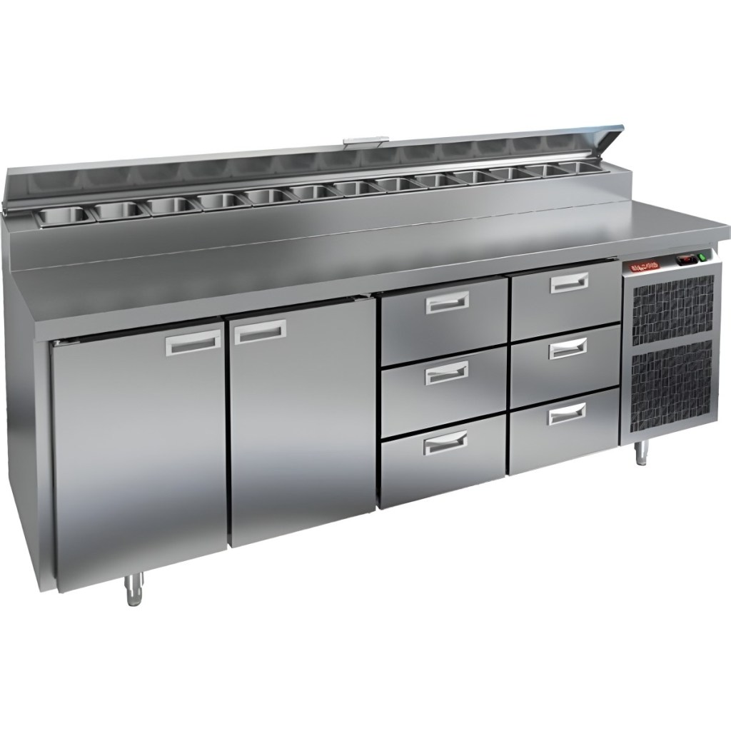 Каталог оборудования Холодильное оборудованиеСтолы охлаждаемыеСтолы холодильные для пиццыСтол холодильный для пиццы HiCold PZ2-1133GN (1/6) Стол холодильный для пиццы HiCold PZ2-1133GN (1/6) Код товара: 064-759 Поделиться: WhatsAppTelegram СравнитьДобавить в КПВ избранное 0 342 442 ₽ В корзину 0 шт Под заказСамовывоз сегодня бесплатно Взять в кредит Купить в лизинг Получить консультацию в WhatsApp Описание Характеристики Отзывы 0 Стол холодильный для пиццы HiCold PZ2-1133GN (1/6) предназначен для кухонь и предприятий общественного питания. Он используется для раскатки теста, подготовки ингредиентов для пиццы, салатов и других блюд, а также для охлаждения и кратковременного хранения скоропортящихся продуктов. Модель совмещает нержавеющую рабочую поверхность и охлаждаемый отсек с 2 дверьми и 6 ящиками, обеспечивая удобный доступ к ингредиентам и эффективное хранение. Особенности: Динамическая система охлаждения для равномерного поддержания температуры Автоматическая оттайка для удобного обслуживания Электронная панель управления для точной настройки параметров Вместительная внутренняя полка формата GN 1/1 (размер 530×325 мм) 2 двери и 6 вместительных ящика для хранения ингредиентов Автоматические доводчики дверей с фиксатором открытого положения Легкозаменяемые магнитные уплотнители для герметичности Открытая агрегатная часть для легкого доступа к компонентам Регулируемые по высоте ножки для устойчивости Нержавеющая столешница глубиной 486 мм и толщиной 50 мм — устойчива к коррозии, легко моется и гигиенична Толщина теплоизоляции: 50 мм Максимальная глубина гастроемкостей: 100 мм Вместимость салат-бара: 13 гастроемкости Стол холодильный HiCold PZ2-1133GN (1/6) — это надежный и функциональный стол для пиццы. Он объединяет рабочую поверхность и охлаждаемый отсек, упрощает хранение и подготовку ингредиентов, обеспечивает удобство работы повара и соответствует стандартам профессиональной кухни. Изображение товара, представленного на фото, может отличаться от его фактического вида. Показать все Габаритные размеры2280×700×1000 ммДиапазон рабочей температурыот +2 до +10 °CРасположение агрегатаБоковое Материал столешницыНержавеющая Тип столаС дверьми и ящиками Тип двериГлухая Объём660 лТип гастроемкостейGN 1/6 Количество дверей2 штКоличество ящиков6 штРазмер полки530×325 ммНапряжение220 ВМощность0,5 кВтТип охлажденияДинамическое Тип оттайкиАвтоматическая Габариты в упаковке2420×850×1080 ммВес нетто208 кгВес брутто240 кгБрендHicoldВсе холодильные столы для пиццы HicoldВсе нержавеющие холодильные столы для пиццы Оставить отзыв Еще никто не оставил отзыв на этот товар Ранее просмотрено Под заказ 236 872 ₽ Стол холодильный для пиццы HiCold PZ1-111GN (1/3) М