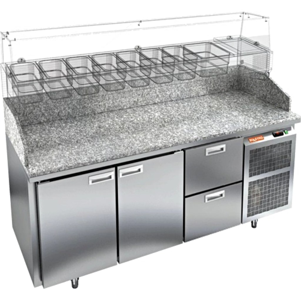 Каталог оборудования Холодильное оборудованиеСтолы охлаждаемыеСтолы холодильные для пиццыСтол холодильный для пиццы HiCold PZ3-112/GN камень Стол холодильный для пиццы HiCold PZ3-112/GN камень Код товара: 065-006 Поделиться: WhatsAppTelegram СравнитьДобавить в КПВ избранное 0 297 352 ₽ В корзину 0 шт Под заказСамовывоз сегодня бесплатно Взять в кредит Купить в лизинг Получить консультацию в WhatsApp Описание Характеристики Отзывы 0 Стол холодильный для пиццы HiCold PZ3-112/GN камень предназначен для использования в пиццериях, кафе, магазинах и ресторанах. Он сочетает корпус из нержавеющей стали и гранитную столешницу, идеально подходящую для раскатки теста и подготовки ингредиентов. Благодаря совмещению рабочей поверхности и охлаждаемого объёма, стол обеспечивает удобную организацию процессов и кратковременное хранение скоропортящихся продуктов. Витрина приобретается отдельно. Особенности модели: Охлаждение: динамическое — равномерное поддержание температуры Оттайка: автоматическая — удобство и экономия времени Панель управления: электронная — точная настройка температуры Ножки: регулируемые по высоте — устойчивость на неровной поверхности Двери: 2 глухие двери с автоматическими доводчиками и фиксатором открытого положения Ящики: 2 выдвижных ящика — удобное хранение ингредиентов Уплотнители: легкозаменяемые магнитные — герметичность и простота обслуживания Толщина теплоизоляции: 50 мм — сохранение холода и энергоэффективность Рабочая поверхность: глубина 680 мм — удобство работы HiCold PZ3-112/GN камень— это надёжный и функциональный холодильный стол для пиццы, который сочетает прочность, эргономику и эффективное охлаждение. Благодаря гранитной столешнице, корпусу из нержавеющей стали, двум глухим дверям и двум выдвижным ящикам он станет универсальным решением для профессиональной кухни. Изображение товара, представленного на фото, может отличаться от его фактического вида. Показать все Габаритные размеры1835×700×1050 ммДиапазон рабочей температурыот +2 до +10 °CРасположение агрегатаБоковое Материал столешницыГранитная Тип столаС дверьми и ящиками Тип двериГлухая Объём505 лКоличество дверей2 штКоличество ящиков2 штРазмер полки530×325 ммНапряжение220 ВМощность0,5 кВтТип охлажденияДинамическое Тип оттайкиАвтоматическая Габариты в упаковке2000×850×1180 ммВес нетто172 кгВес брутто192 кгБрендHicoldВсе холодильные столы для пиццы HicoldВсе нержавеющие холодильные столы для пиццы Оставить отзыв Еще никто не оставил отзыв на этот товар Ранее просмотрено Под заказ 327 952 ₽ Стол холодильный для пиццы HiCold PZ3-122/GN камень Под заказ 253 251 ₽ Стол холодильный для пиццы HiCold PZ3-12/GN камень Под заказ 297 352 ₽ Стол холодильный для пиццы HiCold PZ3-211/GN камень Под заказ 268 552 ₽ Стол холодильный для пиццы HiCold PZ3-13/GN камень