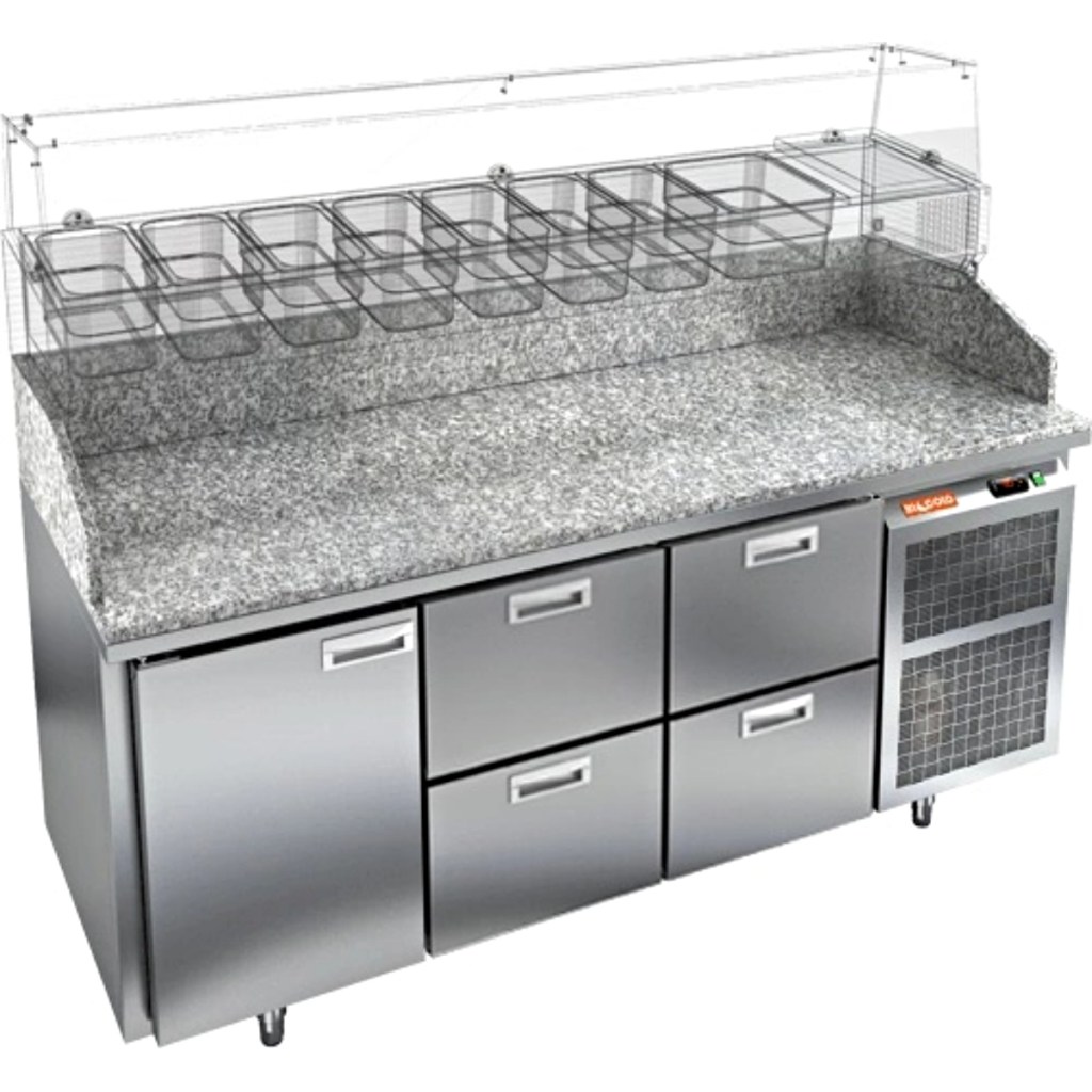 Каталог оборудования Холодильное оборудованиеСтолы охлаждаемыеСтолы холодильные для пиццыСтол холодильный для пиццы HiCold PZ3-122/GN камень Стол холодильный для пиццы HiCold PZ3-122/GN камень Код товара: 065-008 Поделиться: WhatsAppTelegram СравнитьДобавить в КПВ избранное 0 327 952 ₽ В корзину 0 шт Под заказСамовывоз сегодня бесплатно Взять в кредит Купить в лизинг Получить консультацию в WhatsApp Описание Характеристики Отзывы 0 Стол холодильный для пиццы HiCold PZE3-122/GN камень предназначен для использования в пиццериях, кафе, магазинах и ресторанах. Он идеально подходит для раскатки теста, подготовки ингредиентов и кратковременного хранения скоропортящихся продуктов. Витрина приобретается отдельно. Стол сочетает корпус из нержавеющей стали и гранитную столешницу, которая устойчива к механическим и температурным нагрузкам и удобна в работе с тестом. Такая конструкция обеспечивает долговечность, гигиеничность и простоту ухода. Особенности модели: Охлаждение: динамическое — равномерное поддержание температуры Оттайка: автоматическая — удобство и экономия времени Панель управления: электронная — точная настройка температуры Ножки: регулируемые по высоте — устойчивость на неровной поверхности Двери: 1 глухая дверца с автоматическими доводчиками и фиксатором открытого положения Ящики: 4 выдвижных ящика — удобное хранение ингредиентов Уплотнители: легкозаменяемые магнитные — герметичность и простота обслуживания Толщина теплоизоляции: 50 мм — сохранение холода и энергоэффективность Рабочая поверхность: глубина 680 мм — удобство работы HiCold PZE3-122/GN камень— это надёжный и функциональный холодильный стол для пиццы, который сочетает прочность, эргономику и эффективное охлаждение. Благодаря гранитной столешнице, корпусу из нержавеющей стали, двум глухим дверям и двум выдвижным ящикам он станет универсальным решением для профессиональной кухни. Изображение товара, представленного на фото, может отличаться от его фактического вида. Показать все Габаритные размеры1835×700×1050 ммДиапазон рабочей температурыот +2 до +10 °CРасположение агрегатаБоковое Материал столешницыГранитная Тип столаС дверьми и ящиками Тип двериГлухая Объём505 лКоличество дверей1 штКоличество ящиков4 штРазмер полки530×325 ммНапряжение220 ВМощность0,5 кВтТип охлажденияДинамическое Тип оттайкиАвтоматическая Габариты в упаковке2000×850×1180 ммВес нетто172 кгВес брутто192 кгБрендHicoldВсе холодильные столы для пиццы HicoldВсе нержавеющие холодильные столы для пиццы Оставить отзыв Еще никто не оставил отзыв на этот товар Ранее просмотрено Под заказ 253 251 ₽ Стол холодильный для пиццы HiCold PZ3-12/GN камень Под заказ 297 352 ₽ Стол холодильный для пиццы HiCold PZ3-211/GN камень Под заказ 268 552 ₽ Стол холодильный для пиццы HiCold PZ3-13/GN камень