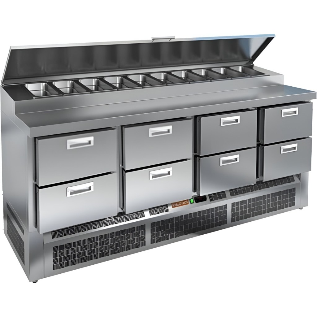 Каталог оборудования Холодильное оборудованиеСтолы охлаждаемыеСтолы холодильные для пиццыСтол холодильный для пиццы HiCold PZE1-2222GN (1/3) Стол холодильный для пиццы HiCold PZE1-2222GN (1/3) Код товара: 064-726 Поделиться: WhatsAppTelegram СравнитьДобавить в КПВ избранное 0 342 622 ₽ В корзину 0 шт Под заказСамовывоз сегодня бесплатно Взять в кредит Купить в лизинг Получить консультацию в WhatsApp Описание Характеристики Отзывы 0 Стол холодильный для пиццы HiCold PZE1-2222GN (1/3) — профессиональное оборудование для предприятий общественного питания и торговли. Он предназначен для раскатки теста и подготовки ингредиентов, используемых при приготовлении пиццы, салатов и других блюд, а также для охлаждения и кратковременного хранения скоропортящихся продуктов и напитков. Совмещение рабочей поверхности и охлаждаемого блока значительно упрощает работу повара — все необходимые компоненты находятся под рукой. Корпус и столешница выполнены из нержавеющей стали, обеспечивая долговечность, устойчивость к повреждениям и лёгкость ухода. Основные особенности: Динамическая система охлаждения — равномерное распределение холода по всему объёму Автоматическая оттайка — стабильная работа без образования наледи Электронная панель управления — точная настройка температуры 8 выдвижных ящика — удобная организация внутреннего пространства Автоматические доводчики ящиков — комфорт при работе Легкозаменяемые магнитные уплотнители — поддержание герметичности Открытая агрегатная часть — лёгкий доступ к техническим элементам Регулируемые по высоте ножки — установка на неровных поверхностях Максимальная глубина гастроёмкостей: 100 мм Глубина рабочей поверхности: 324 мм Толщина столешницы: 50 мм Толщина теплоизоляции: 50 мм Вместимость салат-бара: до 5 гастроёмкостей HiCold PZE1-2222GN (1/3) с четырьмя выдвижными ящиками — надёжный и функциональный холодильный стол для пиццы и салатов. Продуманная организация хранения и удобство эксплуатации обеспечивают быстрый доступ к ингредиентам и повышают производительность на профессиональной кухне.Изображение товара, представленного на фото, может отличаться от его фактического вида. Показать все Габаритные размеры1970×700×990 ммДиапазон рабочей температурыот +2 до +10 °CРасположение агрегатаНижнее Материал столешницыНержавеющая Тип столаС ящиками Объём505 лТип гастроемкостейGN 1/3 Количество ящиков8 штНапряжение220 ВМощность0,46 кВтТип охлажденияДинамическое Тип оттайкиАвтоматическая Габариты в упаковке2070×800×1260 ммВес нетто168 кгВес брутто227 кгБрендHicoldВсе холодильные столы для пиццы HicoldВсе нержавеющие холодильные столы для пиццы Оставить отзыв Еще никто не оставил отзыв на этот товар Ранее просмотрено Под заказ 434 242 ₽ Стол холодильный для пиццы HiCold PZ2-3333GN (1/6)