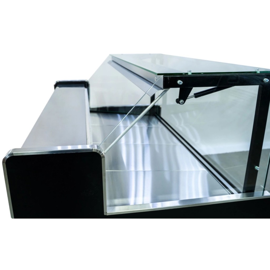 Каталог оборудования Холодильное оборудованиеВитрины холодильныеВитрины холодильные среднетемпературные от 0 до +5 °СВитрина холодильная Ангара 2 КУБ 2,0 динамика Витрина холодильная Ангара 2 КУБ 2,0 динамика Код товара: 066-471 Поделиться: WhatsAppTelegram СравнитьДобавить в КПВ избранное 0 115 522 ₽ В корзину 0 шт Под заказСамовывоз сегодня бесплатно Взять в кредит Купить в лизинг Получить консультацию в WhatsApp Описание Характеристики Отзывы 0 Витрина холодильная Ангара 2 КУБ 2,0 динамика предназначена для демонстрации и кратковременного хранения пищевых продуктов. Обеспечивает поддержание заданной температуры предварительно охлаждённых продуктов и органично вписывается в оформление любого торгового зала или открытой площадки. Особенности: Динамическое охлаждение с равномерным распределением воздушных потоков по всей камере Встроенный компрессорный холодильный агрегат Embraco Aspera или Secop (Danfoss) Надёжный микродвигатель EBM-PAPST Прямое лобовое стекло и боковые стекла толщиной 6 мм, ударопрочные Материалы: поверхность выкладки – нержавеющая сталь, подтоварники – оцинкованная сталь с полимерным покрытием, столешницы – нержавеющая сталь Два вместительных подтоварника для хранения продукции Автоматическое оттаивание испарителя с отводом талой воды в ёмкость в агрегатном отсеке Электронное управление температурой через блок Elitech ETC-974 (2 датчика, усиленное реле) Светодиодное LED-освещение – яркое, энергосберегающее, с низким тепловыделением, включается кнопкой на панели управления Автомат IEK для надёжного включения/выключения витрины Ровное расположение витрины благодаря регулируемым опорам, правильный сбор конденсата и бесшумная работа Равномерное распределение температуры по объёму камеры без образования льда и инея Хладагент – экологичный и нетоксичный R-134a, R-404a Испаритель SEST LUVE от итальянского производителя Комплектация: 2 подтоварника / электронный блок управления Температура окружающей среды: +12…+35 °C Ангара 2 КУБ 2,0 – надёжная и вместительная витрина для демонстрации и хранения предварительно охлаждённых продуктов. Отличается равномерным охлаждением, ярким LED-освещением, автоматическим оттаиванием и прочными материалами, что делает её идеальным решением для больших торговых залов и открытых площадок.Изображение товара, представленного на фото, может отличаться от его фактического вида. Показать все Габаритные размеры2020×980×1260 ммДиапазон рабочей температурыот 0 до +5 °CПлощадь выкладки1,27 м²Длина2020 ммГлубина980 ммВысота1260 ммНоминальная мощность300 ВтРазмер выкладки654 ммПолезный объем290 лХолодообеспечениеВстроенное Тип охлажденияДинамическое Тип оттайкиАвтоматическая Температура эксплуатацииот +12 до +35 °CПодсветкаЕсть ХладагентR134a, R404a Напряжение220 ВРасход электроэнергии в сутки7,2 кВт/сутГабариты в упаковке2300×1350×1200 ммОбъём (брутто)3,73 м³Вес нетто200 кгВес брутто300 кгБрендАнгараВсе витрины холодильные среднетемпературные от 0 до +5 °С 2,0 м Оставить отзыв Еще никто не оставил отзыв на этот товар Ранее просмотрено Под заказ 203 581 ₽ Камера холодильная Polair КХН-10,35 (1660×3160×2460) 80 мм Под заказ 97 114 ₽ Витрина холодильная Ангара 3 КУБ 1,0 динамика