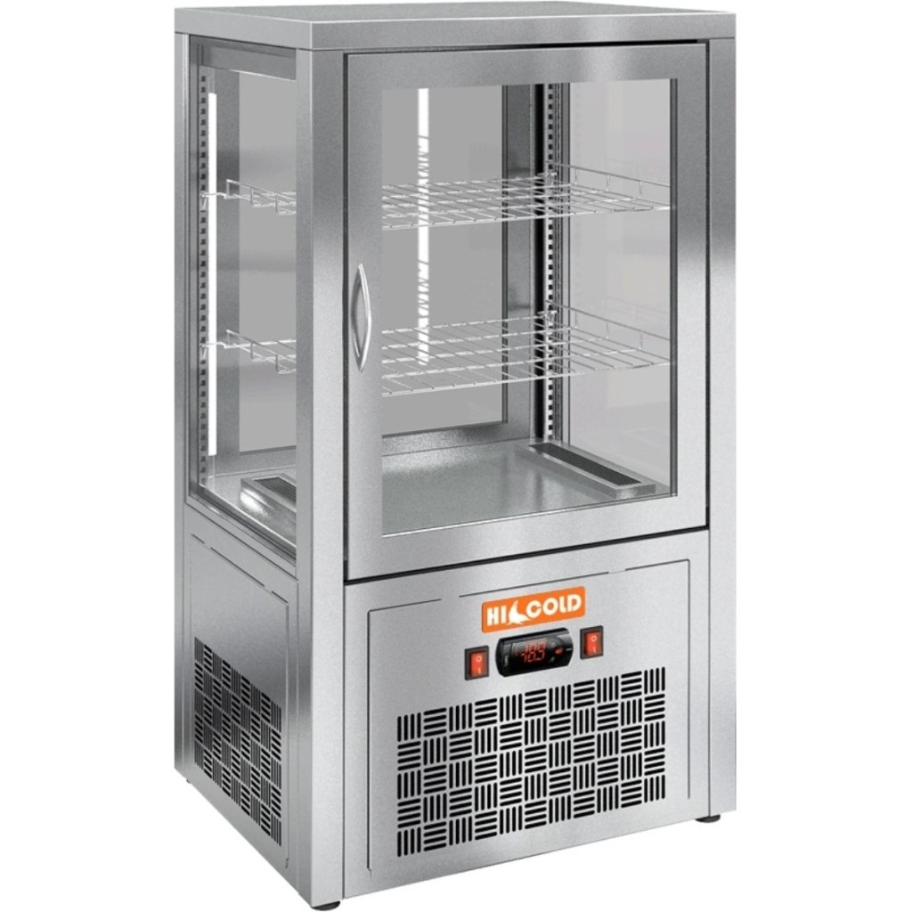 HICOLD VRC T 70 — компактная и функциональная настольная витрина для профессиональной торговли и общественного питания. Она сочетает точное поддержание температуры, удобный доступ с обеих сторон и привлекательную демонстрацию продукции.